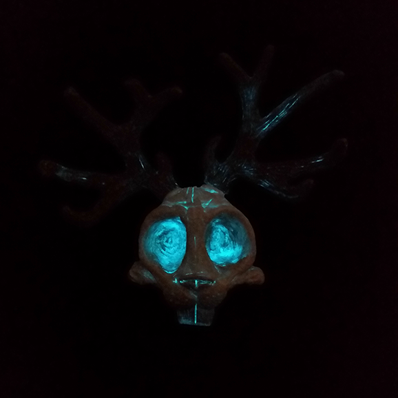 A giant 4.5 x4.5 magnet of mythical proportions. Caught and hand painted and mounted in Texas this wiley bugger will keep your fridge and all it's belongings safe day or night with its glow in the dark skull.