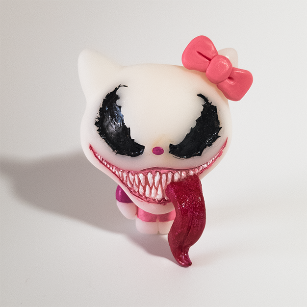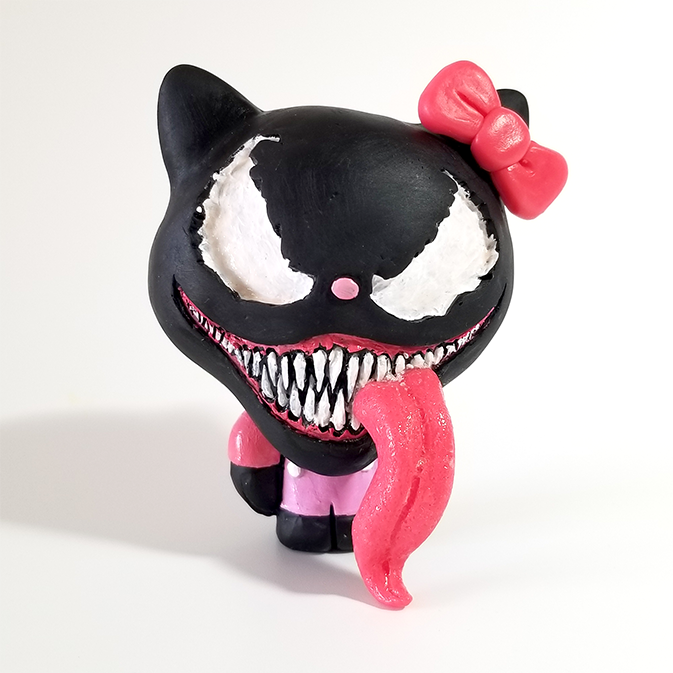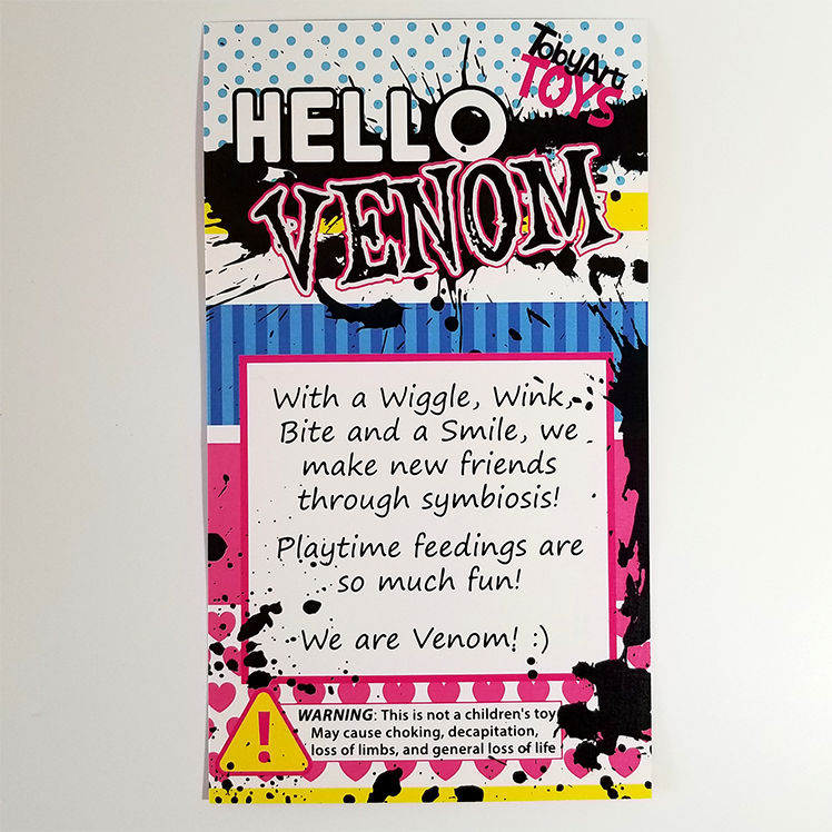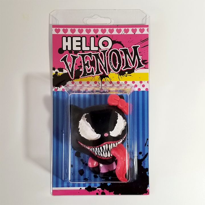 With a Wiggle, Wink, Bite and a Smile, we make new friends through symbiosis. Playtime feedings are so much fun. We are venom! :) 3" Tall resin toy, hand sculpted and cast.